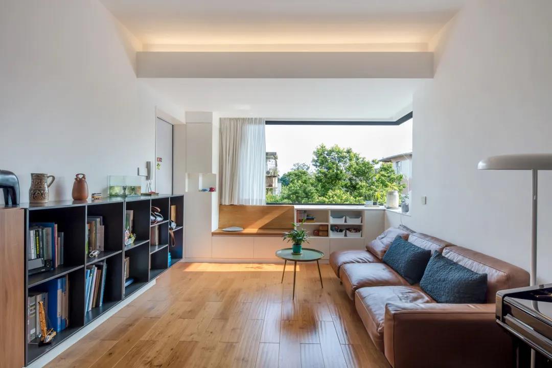 老公房装修改造堪称逆天这才对得起房价 客厅采用半开放式隔断展示柜,既从入口处隔断,又增加了储物性。 沙发两侧采用柔和舒适的灯光,让木质的家更加温馨。 厨房和客厅之间开了一扇室内窗户,缓解了原本封闭的厨房里压抑的感觉。样增加了整体…