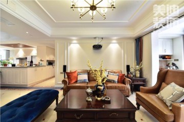 围绕美式风格,同时混搭北欧元素,设计师以简洁明快的设计风格为主调,将以上两种设计元素完美结合。在总体布局方面尽量满足业主生活需要,通过黑白灰蓝几种色彩相互跳跃,体现了随性与高雅产生的双重碰撞……下面一起看看160平装修效果图吧!
