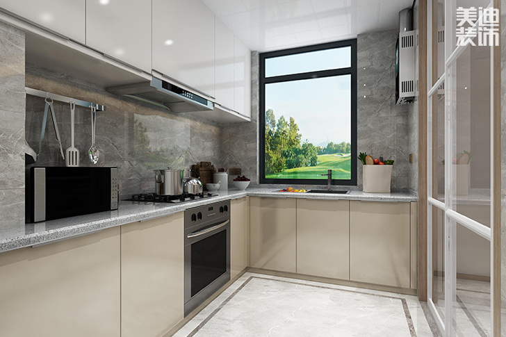 当你的厨房有足够的空间可以支配,U型橱柜就是首选。以U型橱柜为基础打造的厨房,更加注重对空间内活动区域的划分。