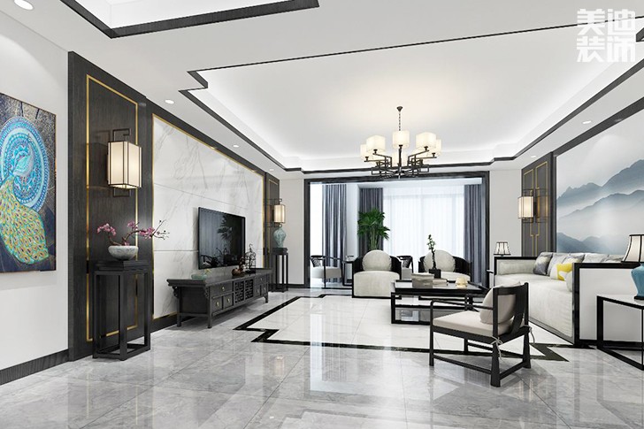 新月半岛新中式装修案例图--客厅