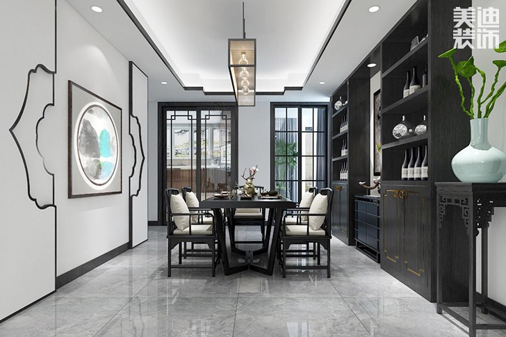 新月半岛新中式装修案例图--餐厅